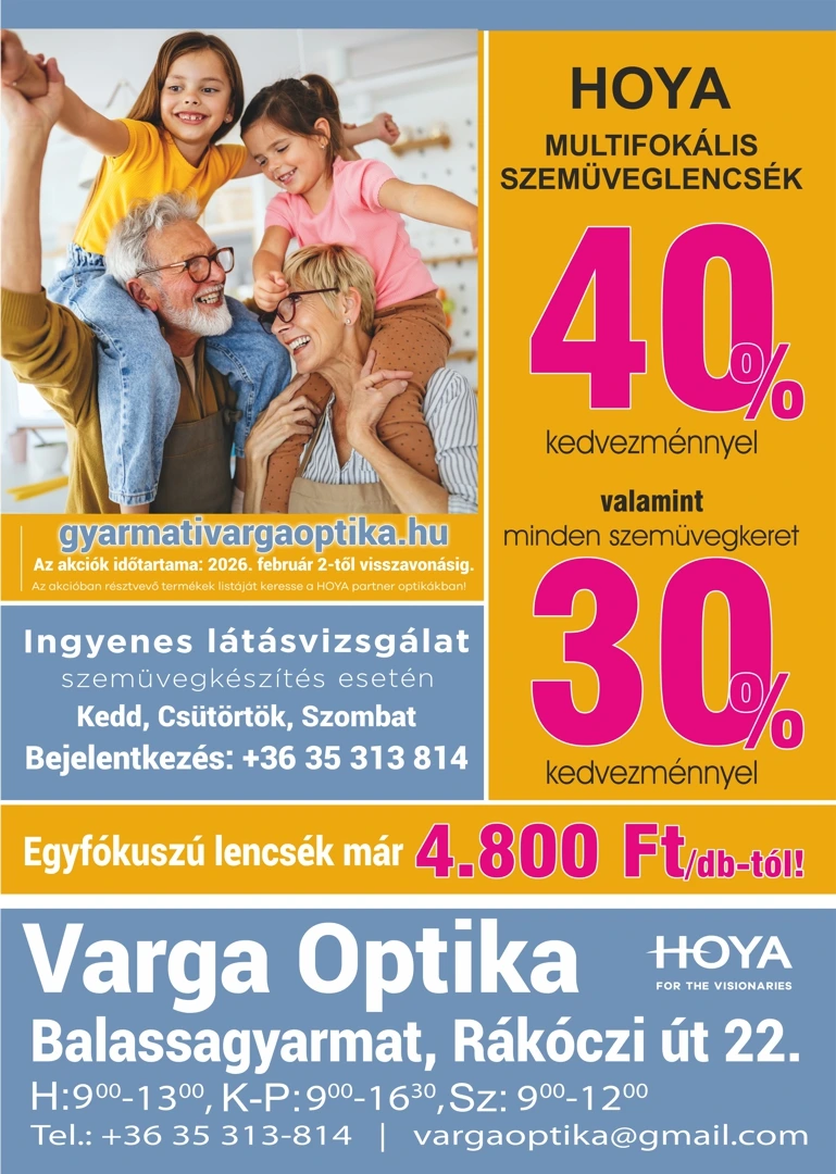 Bejelentkezés és információ: vargaoptika@gmail.com vagy telefonon 06-35/313 814. Vagy az alábbi űrlapon